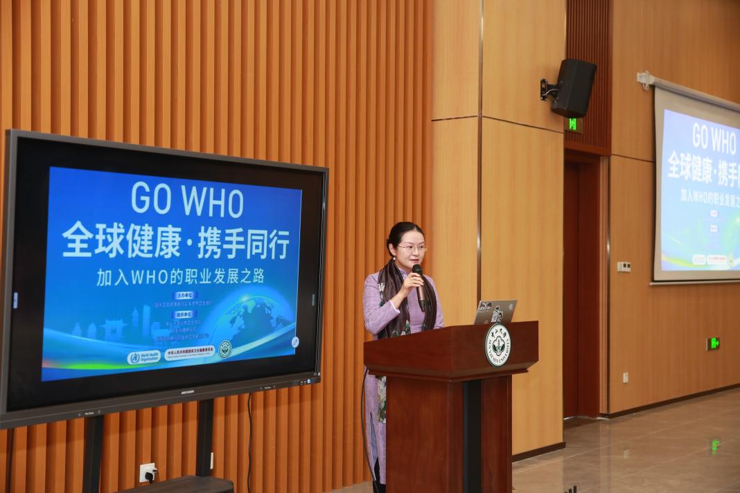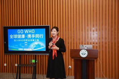 副院长王庆,以及来自全国8个省市和地区的卫生健康委和医疗卫生机构及我校师生近100余位代表参加了会议。本次活动旨在帮助中国青年深入了解世卫组织的核心职能与其在全球卫生领域的重要作用,为有志于加入世卫组织的青年提供了职业路径指导。